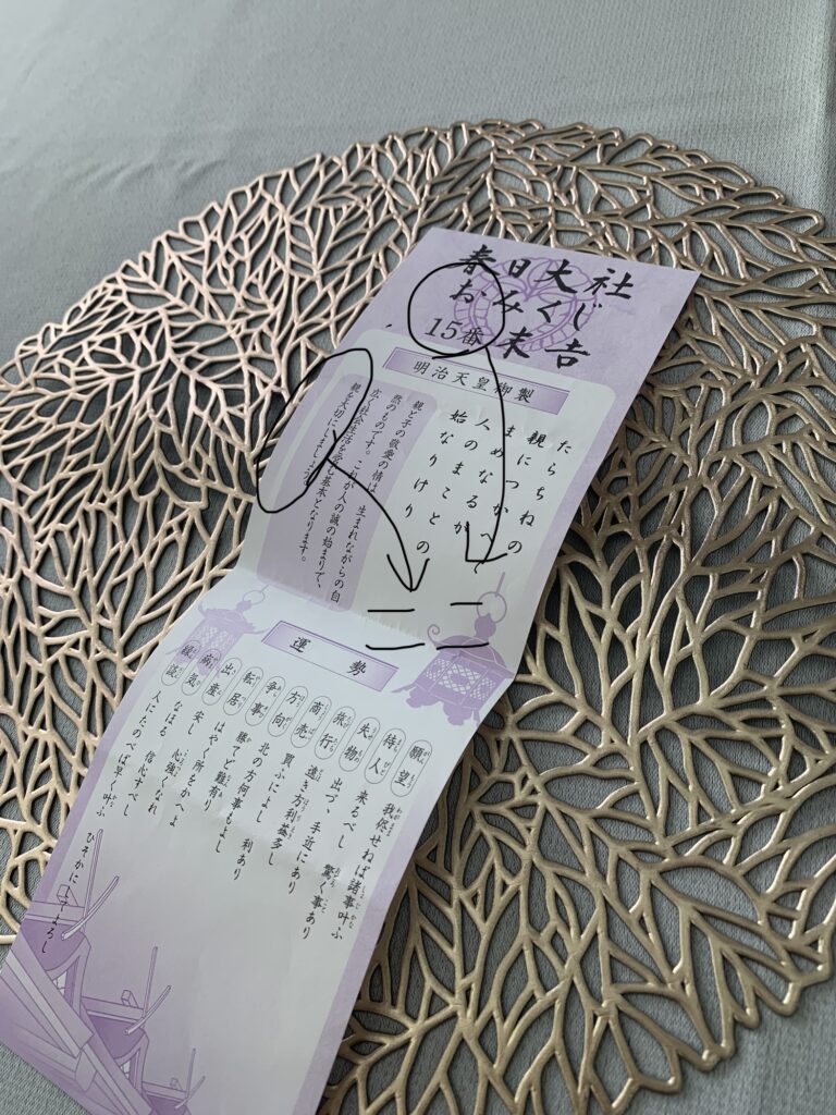 私の2021年のおみくじだと、ざーと読んでいき、キャッチしたのは「親を大切に」。これを1年の重要テーマとしてライフスタイルの上位にあげました。 あとは番号。2021は「15」だったので毎月15日、パーキング番号15,など、、1年のラッキー番号として使います! あとは自分にとって「今年はこんな1年」というテーマはわかるので、そのテーマに沿って365日を過ごすという大変シンプルで簡単な1年の始まりです。なので、大吉とか凶とかはあまり重要でないと思います!